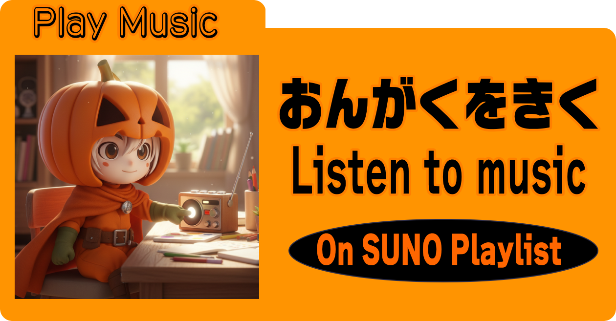 可愛いキャラクターを作りたい!という気持ちで最初は名前を決めて歌を作ったんだ。 正義の味方、ボクチャンダー!ってどんなキャラクター?と想像と連想を重ねて、思いついた色んな特徴を書いて、最初は作曲AIで歌詞が生成されたとき、カボチャパンツにヘルメットという歌詞が出てきたことで、可愛いかぼちゃパンツでカボチャのヘルメットをかぶった正義のヒーロー のキャラクターづくりの日々が始まった。